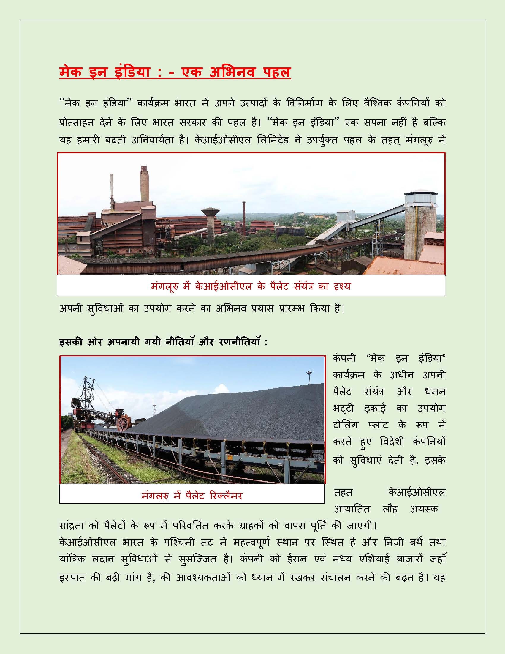 देश में लौह अयस्क खनन, बेनेफिसिएशन और लौह-ऑक्साइड पैलेटीकरण के संचालन में चार दशकों से अधिक के अनुभव के साथ भारत सरकार के इस्पात मंत्रालय के नियंत्रणाधीन मिनी रत्न श्रेणी का एक सार्वजनिक क्षेत्र उपक्रम।