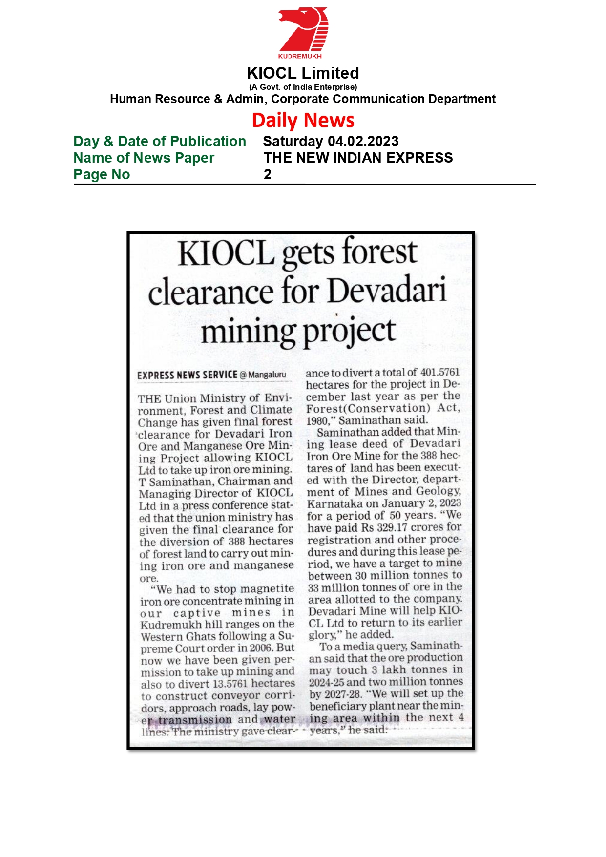 © 2026 KIOCL Limited. All rights reserved.